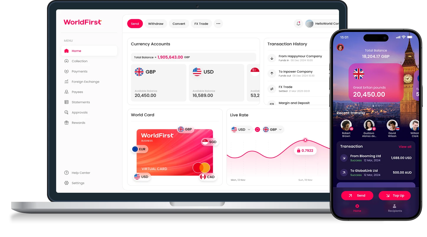 WorldFirst is able to provide us with a multi-currency World Account, that allows us to make and collect payments in various countries and currencies on a single platform.
